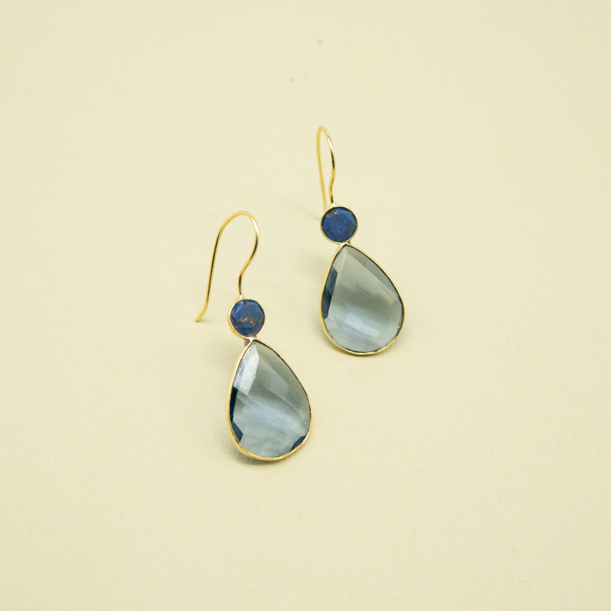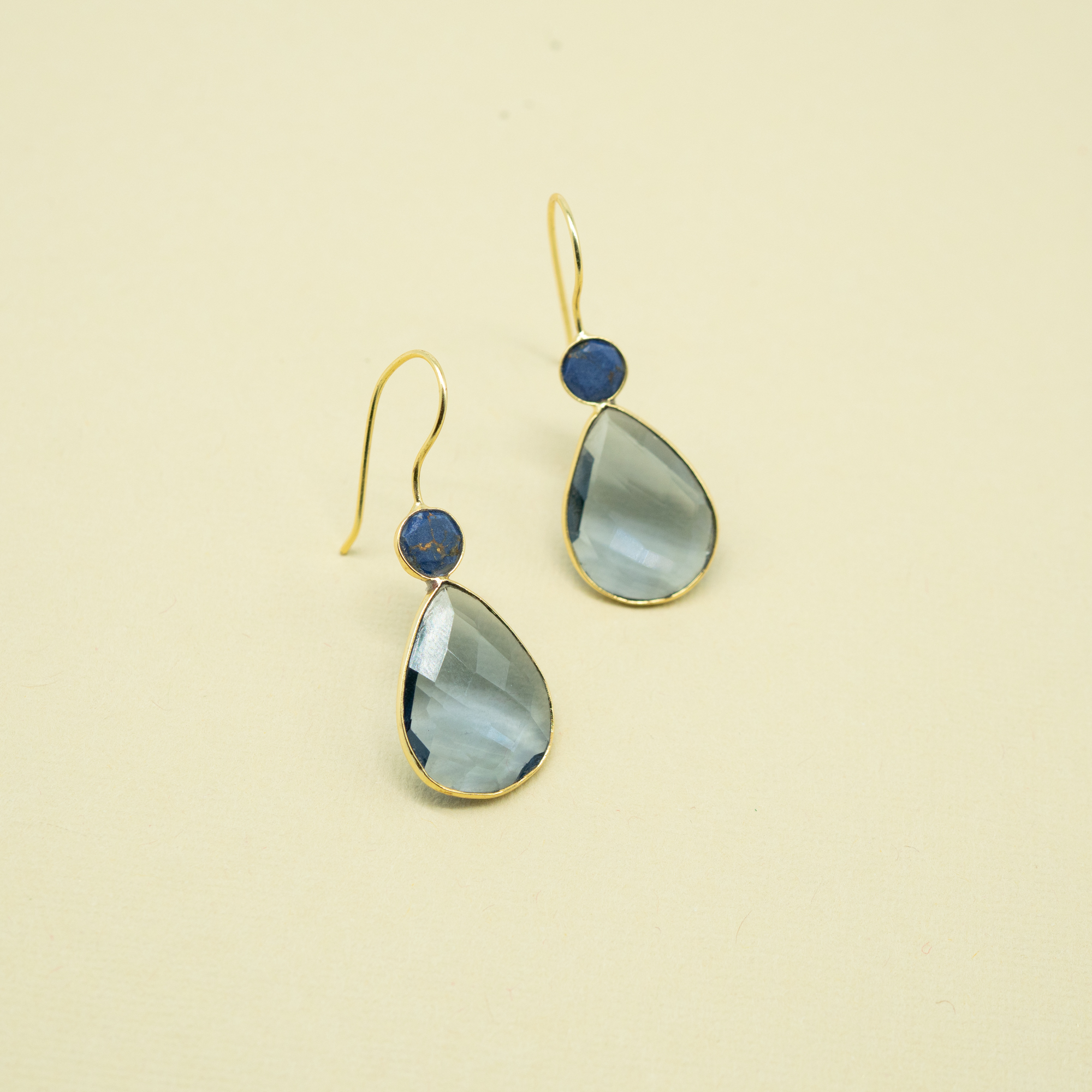 GOLD PLATED BRASS, GENUINE LAPIS STONE, GLASS CRYSTAL
